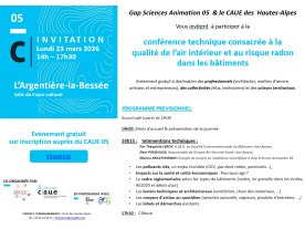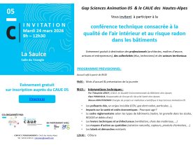 consacrées à la qualité de l’air intérieur et au risque radon dans les bâtiments, organisée par Gap Sciences Animation et le CAUE 05, dans le cadre d’un appel à projet de l’ARS PACA.